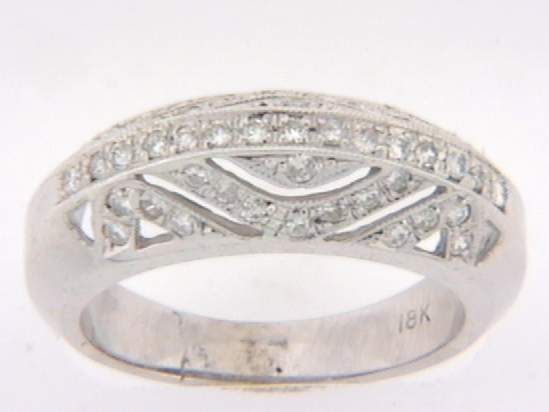 18K. WHITE GOLD DIAMOND RING WITH 0.59CT. ROUND DIAMONDS.