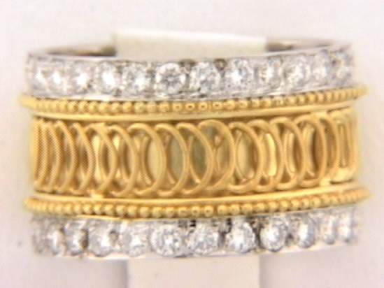 18K.TWO TONE DIAMOND RING WITH 1.10CT. ROUND DIAMONDS.
